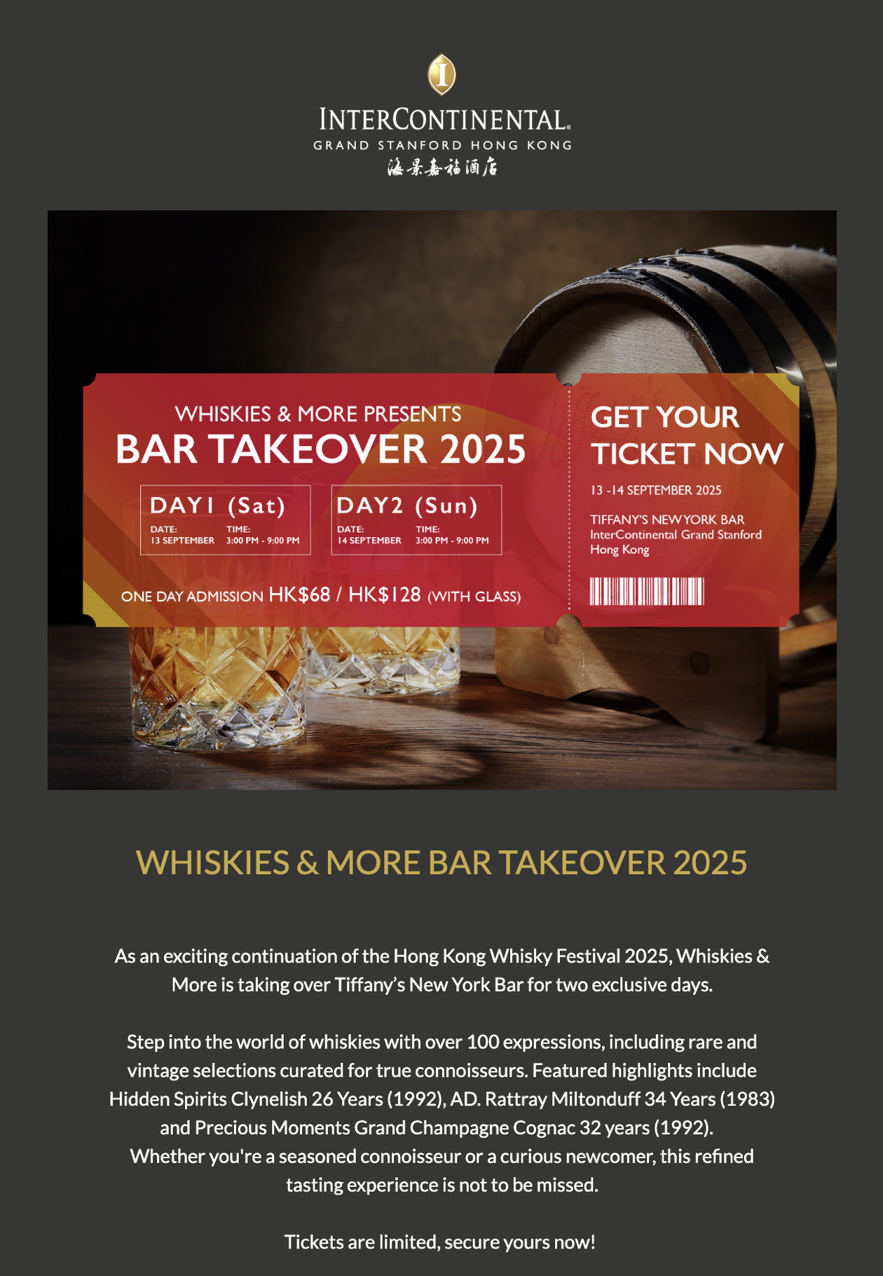 70 Mody Road, East Tsim Sha Tsui, Kowloon, Hong KongW: hongkong.intercontinental.comS: eshop.icgrandstanford.comE: info@icgrandstanford.comT: +852 2721 5161